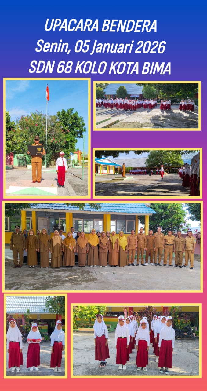 SDN 68 Kolo Kota Bima, 5 Januari 2026 - Upacara bendera hari Senin setelah liburan panjang dilaksanakan di lapangan SDN 68 Kolo Kota Bima. Kepala Sekolah, Bapak M Amin S.Sos, bertindak sebagai pembina upacara.
